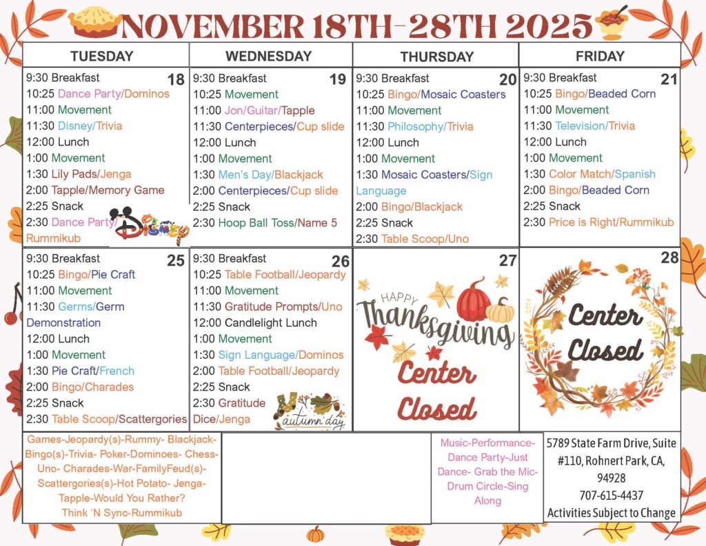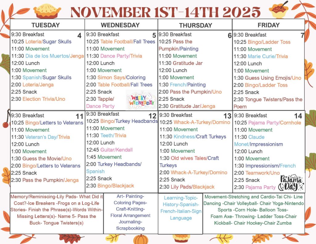 AgeWell PACE provides daily activities and meals for our Day Center participants. Our Day Center team arranges a variety of activities and themed days for participants to enjoy. Along with the Day Center Team, AgeWell PACE Dietary team provides a well-balanced meal program served daily to those who participant in the Day Center.